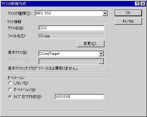 新規クラスの作成で、このようにしてクラスを作成すればOK