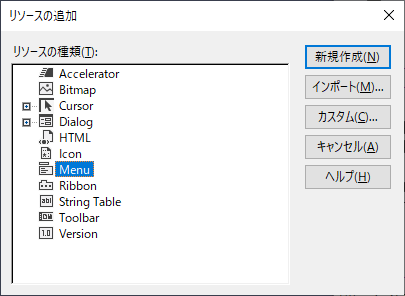 VisualStudio2022 リソースの編集をやってみた(その1) とりあえず、簡単なメニューを作成