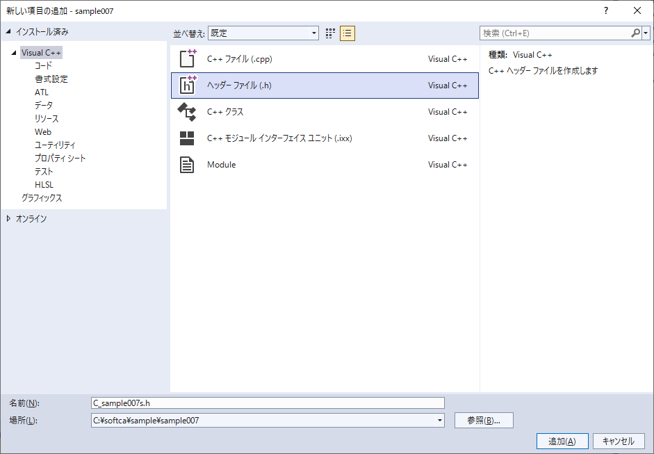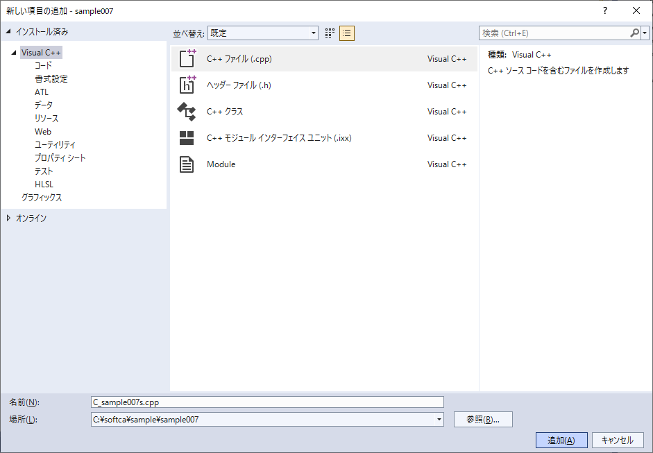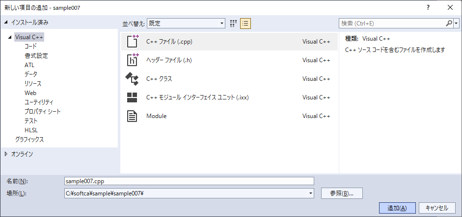 .cppファイルは、 C_sample007.cpp でいいだろう。