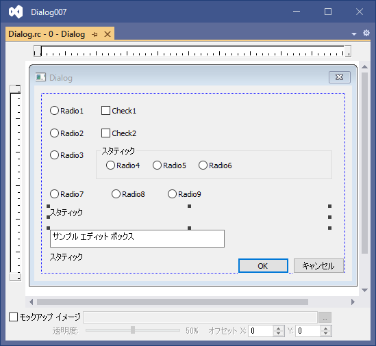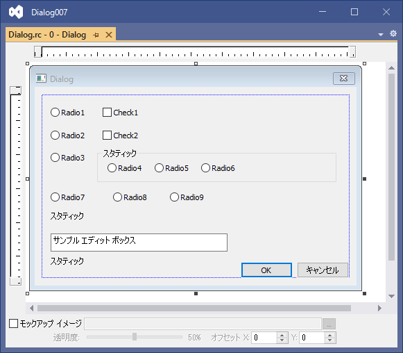 ダイアログに、ラジオボタン、チェックボックス、グループボックス、