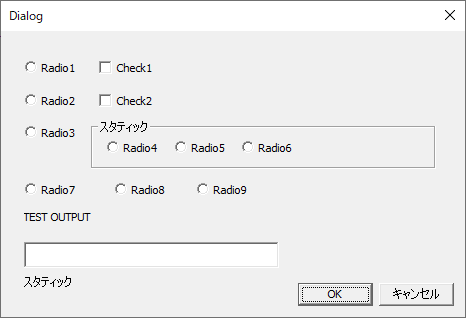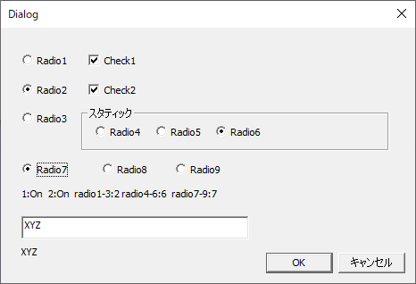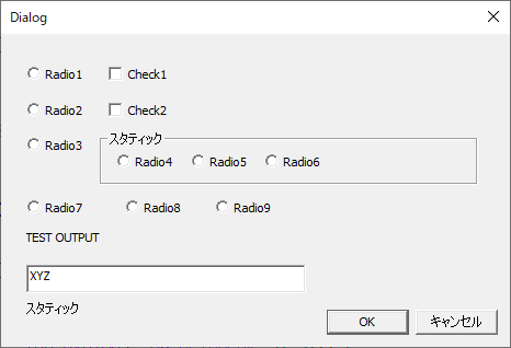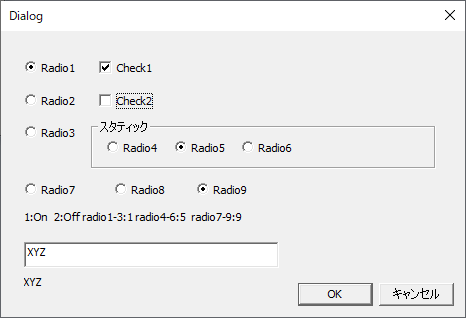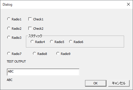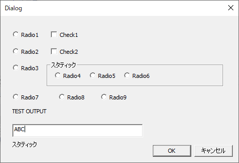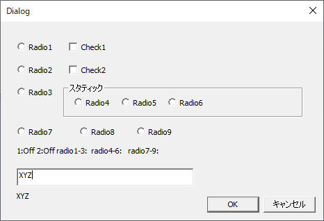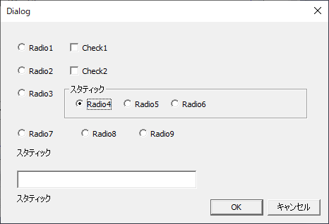 ダイアログ、入力・チェックボックス・ラジオボタンを貼り付け