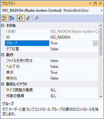 Radio4のプロパティを変更(グループをTrueに)
