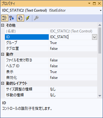 IDC_STATICからIDC_TEXT2に変える。