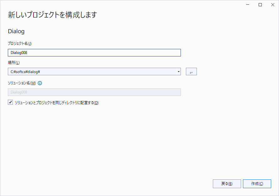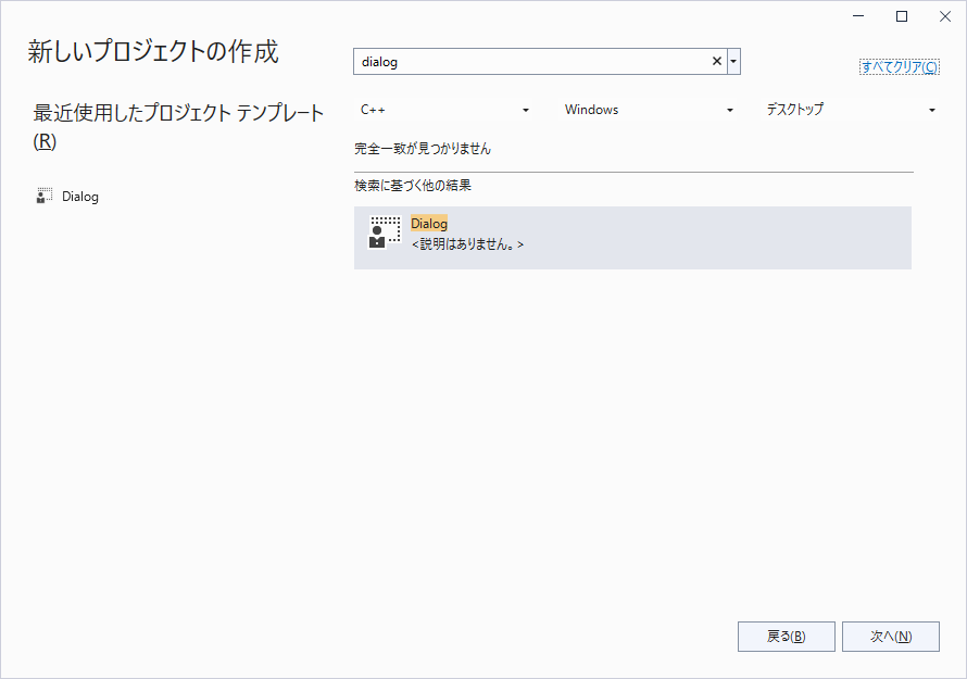 検索にdialogを入力し前に作った、テンプレートを選ぶ