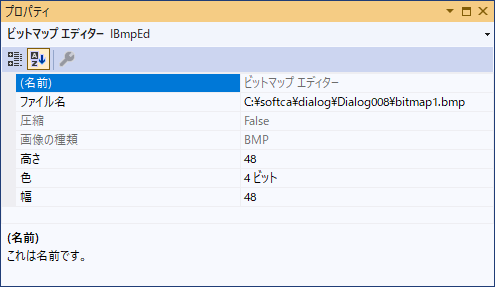 ソリューションエクスプローラーで、bitmap1.bmpをダブルクリックする。